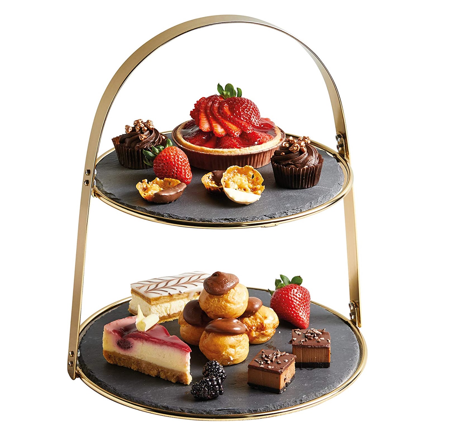 Artesà 2-Tiered Cake Stand with Round Slate Serving Platters,