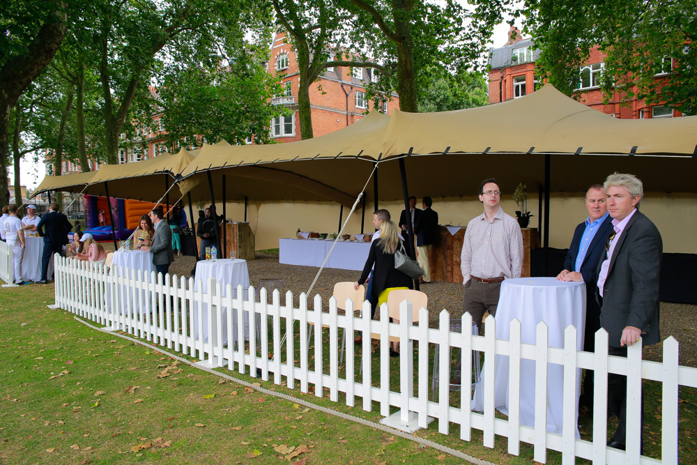 Forty metres of white picket fence with pegs.